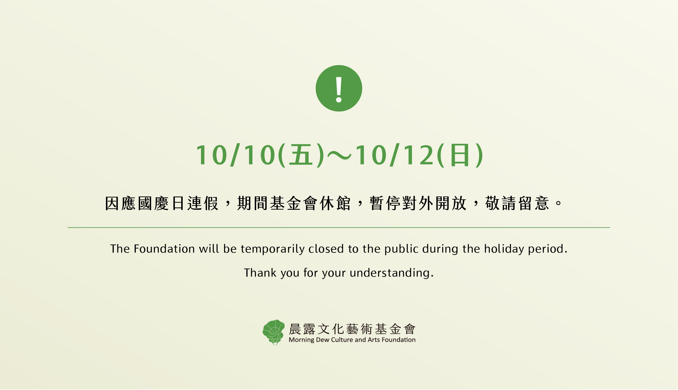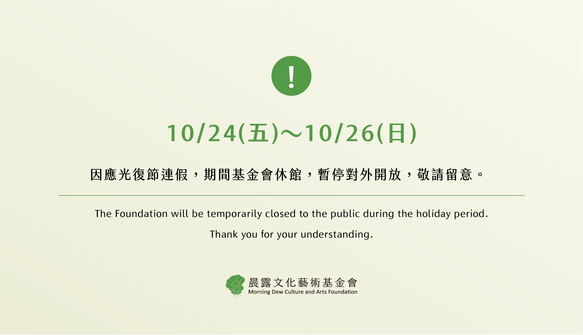 晨露文化藝術基金會(下稱「我們」)係依照以下條款之約定,提供本基金會電子報會員及一般消費者(下稱「網站使用者」)使用基金會之各項網站服務,欲使用本基金會之各項網站服務者請務必詳細閱讀本條款相關內容以保障權益;當網站使用者已開始使用本基金會之各項網站服務時,視為該網站使用者已確實閱讀、瞭解並同意遵守本條款。網站使用者於本條款為任何修改或變更後仍繼續使用本基金會各項資訊服務時,視為網站使用者已確實閱讀、瞭解並同意遵守本條款之修改或變更。若網站使用者未滿二十歲,除網站使用者本人應遵守上述規定外,並請網站使用者的家長(或監護人)同時確實閱讀、瞭解並同意遵守本條款之所有內容,網站使用者方得使用或繼續使用本公司各項資訊服務;當網站使用者於本條款為修改或變更後仍繼續使用本公司各項資訊服務時,即表示網站使用者的家長(或監護人)亦已確實閱讀、瞭解並同意遵守本條款之修改或變更。