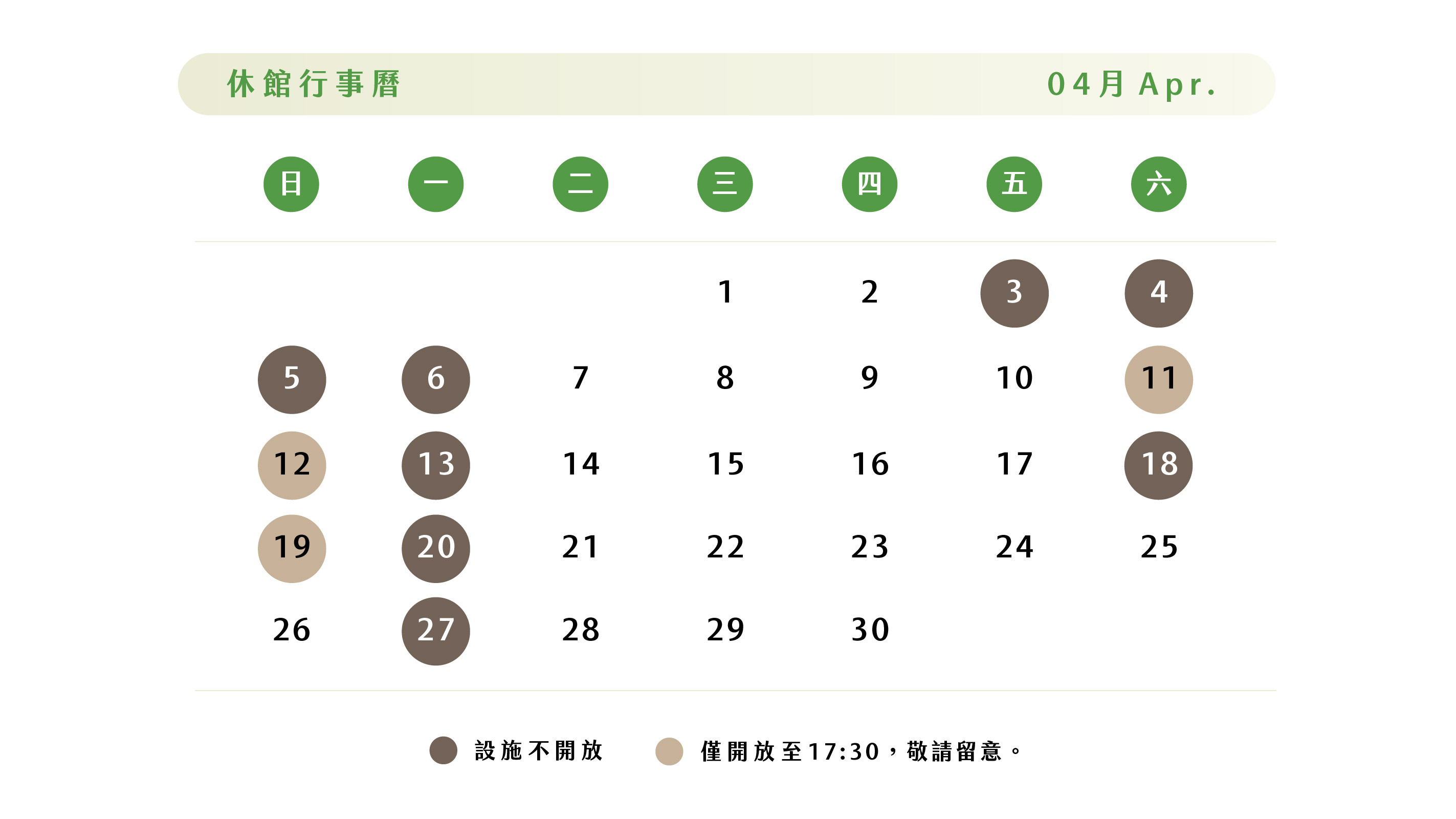 2026年4月休館行事曆